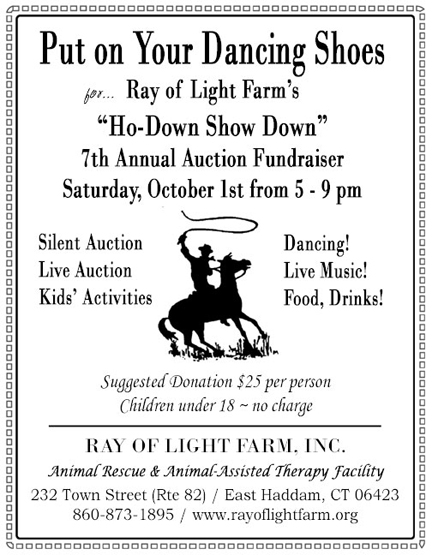 If you’re not familiar with the area, it’s one of the most beautiful in our state — full of charming antique homes and barns, rolling countryside, a few snack shacks and the Goodspeed Opera House. Definitely worth a trip even if you can’t make it to the party. Just be sure to drop in at Ray of Light, see what it’s all about and say hello to the animals there and the devoted people who care for them.