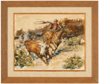 There’s also this gouache on paper under glass by James Lee Colt, entitled “Maverick” (Lot #1192) with an estimate of $600/800. Perfect for anyone who loved the movie Buck and is dreaming about roping, as I am.