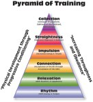 That’s not good enough for me, so I try, while I’m walking and talking, to solidify connections for the rider. Some riders “learn” more in their bodies, through practice and muscle memory, so for them, repetition of the exercise is highly effective. Other riders learn by putting things into context and organizing things in their mind (the training pyramid is a good example). For them, taking a break to talk through why something works and discussing the “what if’s” lets them feel without the distraction of intellectualizing.