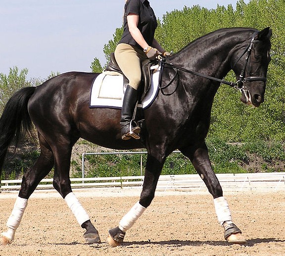 Working on the pirouette (or is it the turn on the haunches?) at the Reitschule Großhelfendorf bei München, courtesy of Andizo at the German language Wikipedia