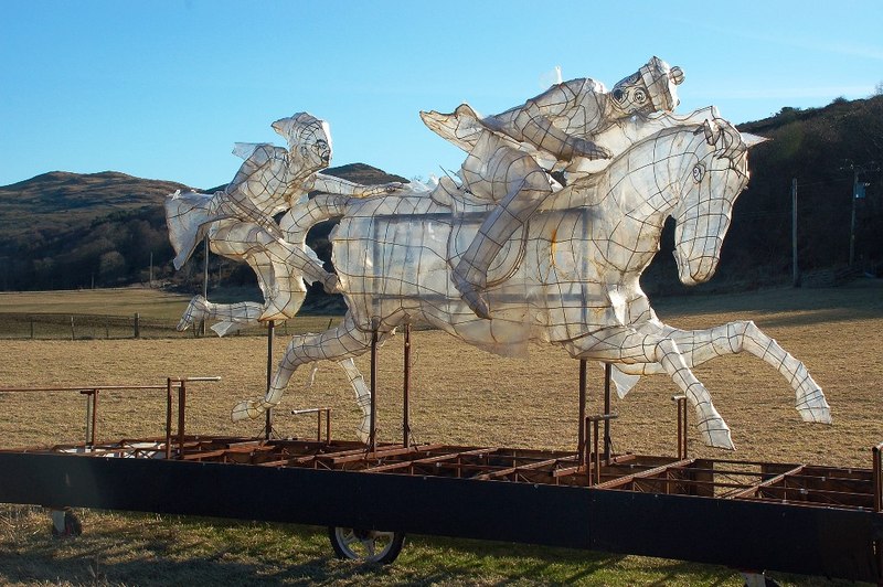 This sculpture portrays the denouement of the poem Tam O’Shanter by Robert Burns. Tam is mounted on his grey mare Meg and is being chased by a young witch. We see that the witch has just caught up with Tam and has grabbed his horse from behind…